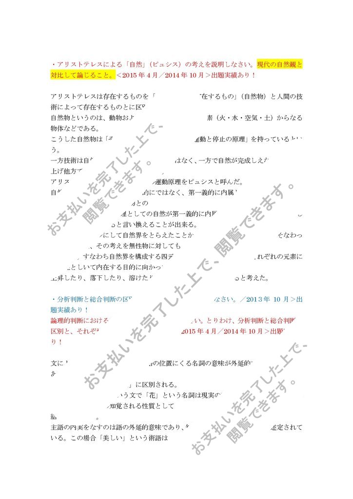 ・アリストテレスによる「自然」(ピュシス)の考えを説明しなさい。現代の自然観と対比して論じること。<2015年4月/2014年10月>出題実績あり!