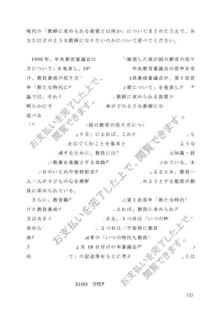設題 現代の「教師に求められる資質とは何か」についてまとめたうえで、あなたはどのような教師になりたいのかについて述べてください。