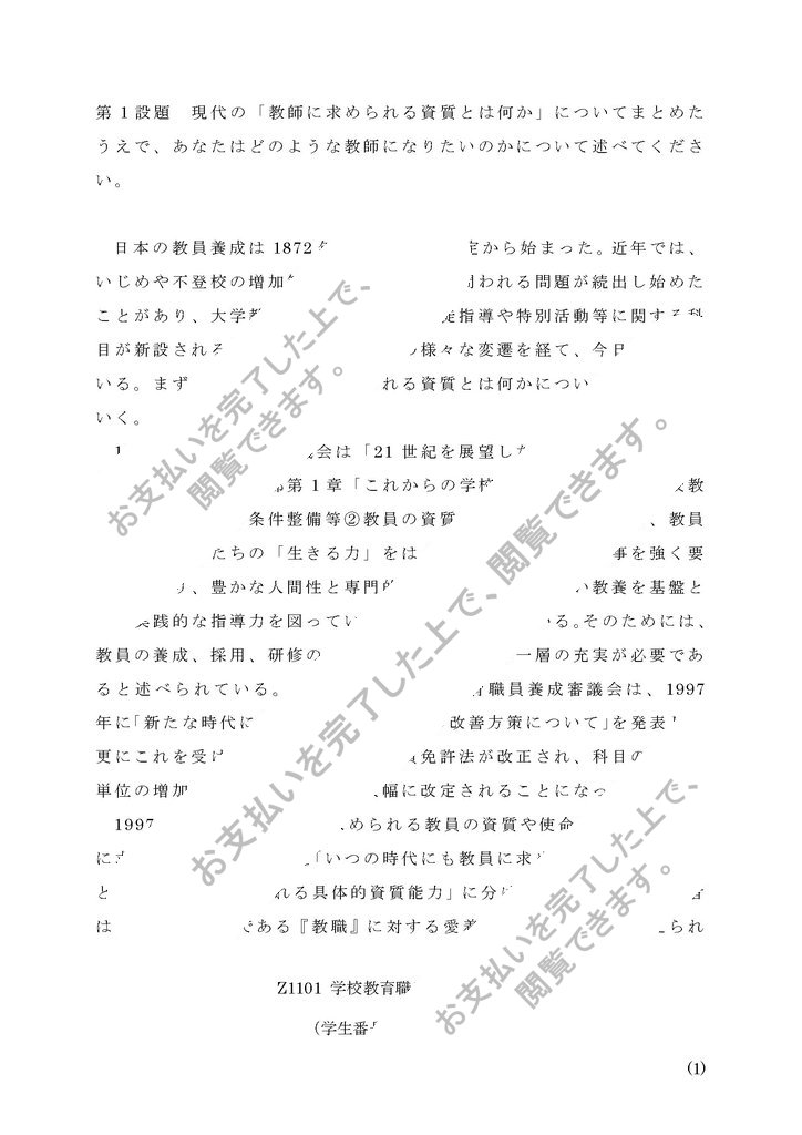 第1設題 現代の「教師に求められる資質とは何か」についてまとめたうえで、あなたはどのような教師になりたいのかについて述べてください。