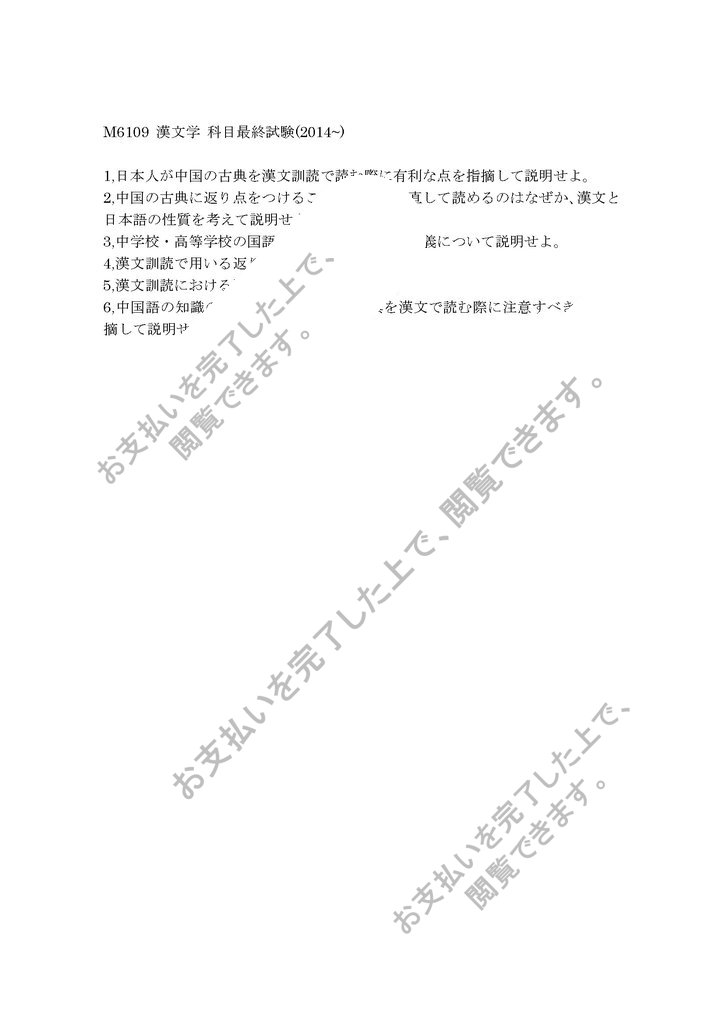 M6109 漢文学 科目最終試験(2014~)