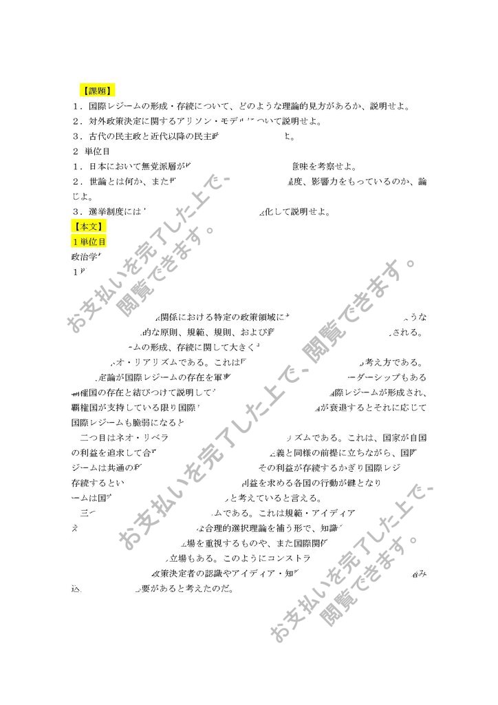 1.国際レジームの形成・存続について、どのような理論的見方があるか、説明せよ。