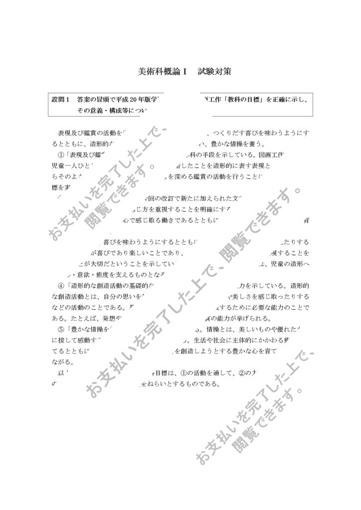 設問1 答案の冒頭で平成20年版学習指導要領・図画工作「教科の目標」を正確に示し、その意義・構成等について論述すること。