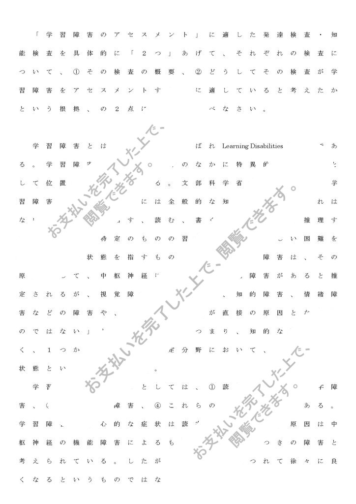 「学習障害のアセスメント」に適した発達検査・知能検査を具体的に「2つ」あげて、それぞれの検査について、①その検査の概要、②どうしてその検査が学習障害をアセスメントするのに適していると考えたかという根拠、の2点について述べなさい。