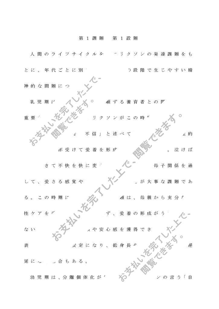 「発育期(乳児期、幼児期、学童期、青年期)の精神保健について発達課題の視点から記述しなさい