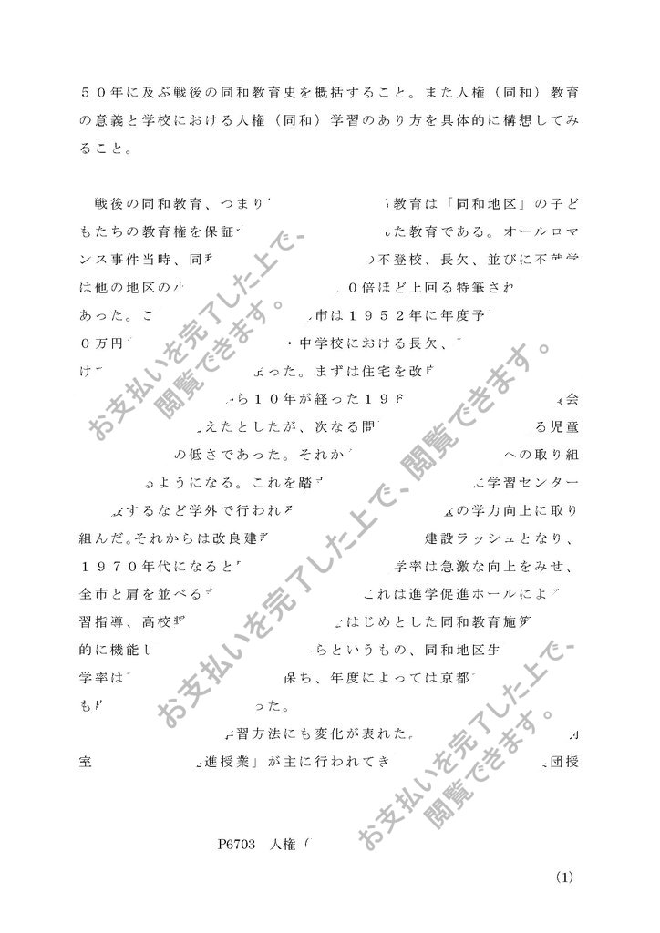 50年に及ぶ戦後の同和教育史を概括すること。また人権(同和)教育の意義と学校における人権(同和)学習のあり方を具体的に構想してみること。