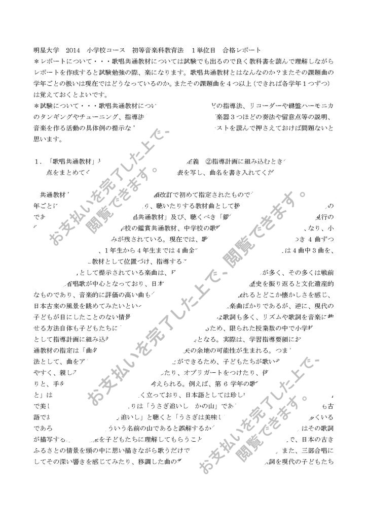 明星大学 2014 小学校コース 初等音楽科教育法 1単位目 合格レポート
