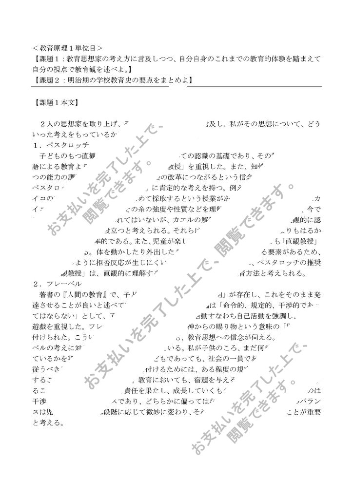 【課題1:教育思想家の考え方に言及しつつ、自分自身のこれまでの教育的体験を踏まえて自分の視点で教育観を述べよ。】