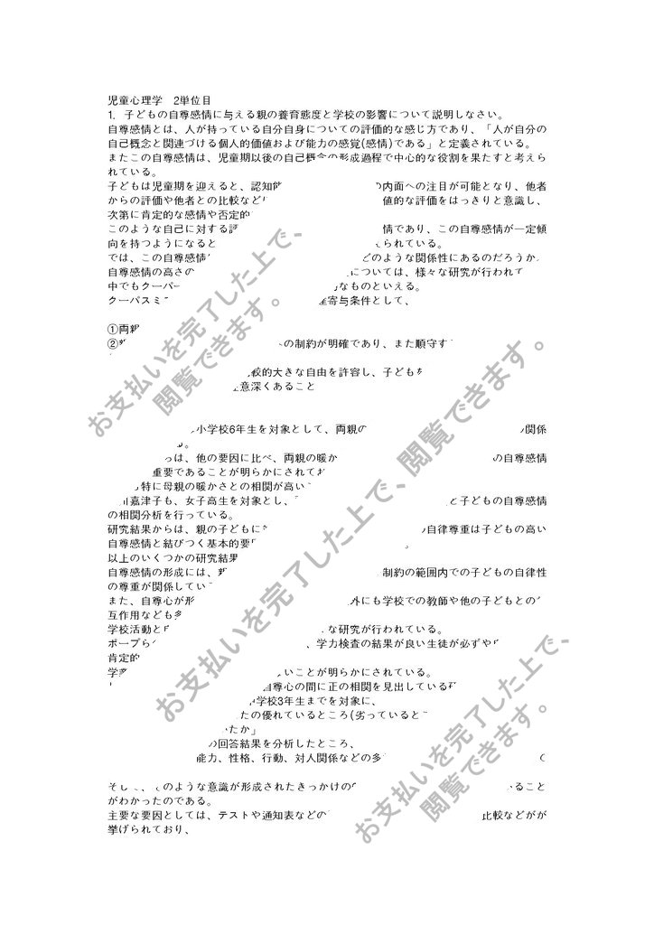 ■■■明星大学 通信教育部 2014年度(平成26年度) 合格レポート PB2090 児童心理学 2単位目■■■
