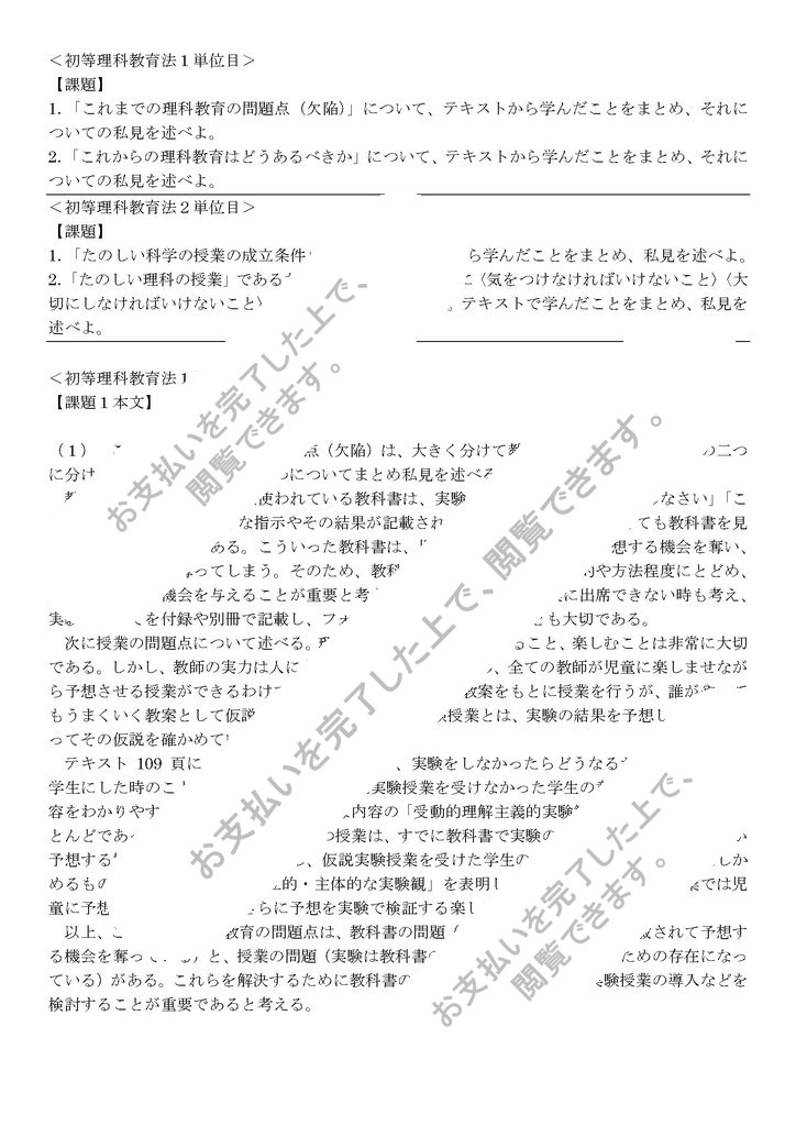 1.「これまでの理科教育の問題点(欠陥)」について、テキストから学んだことをまとめ、それについての私見を述べよ。
