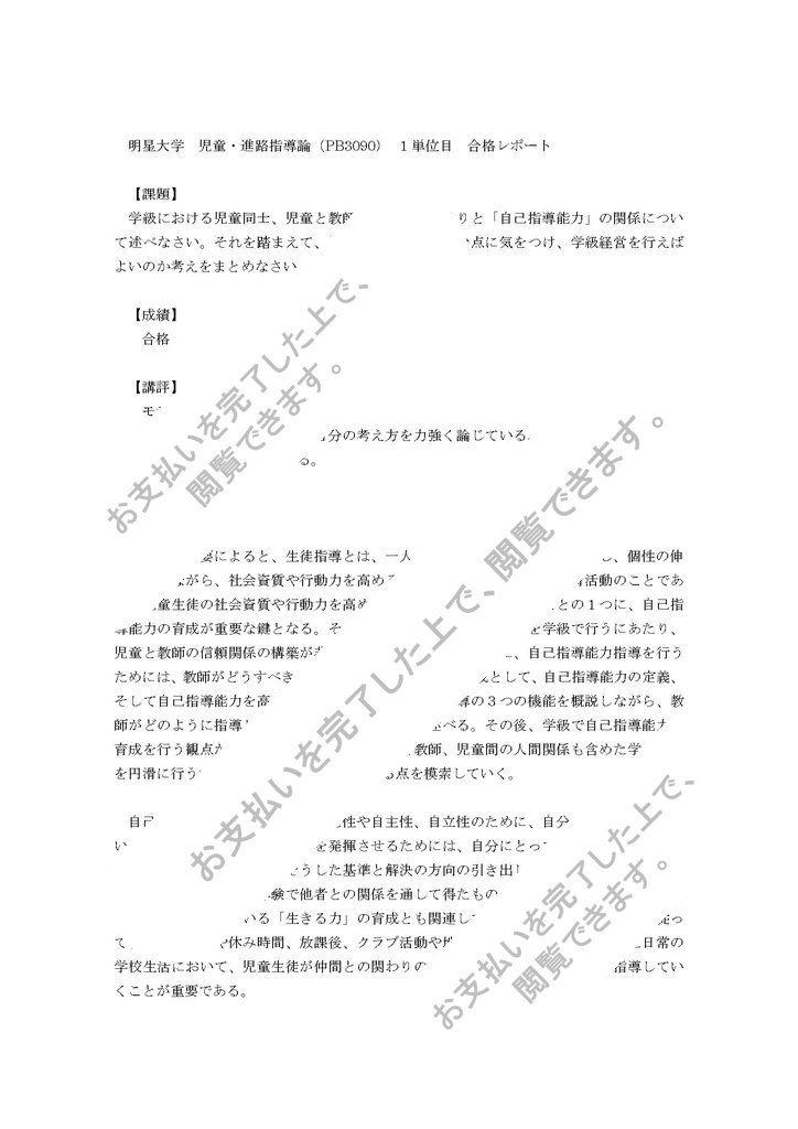 明星大学 児童・進路指導論(PB3090) 1単位目 合格レポート