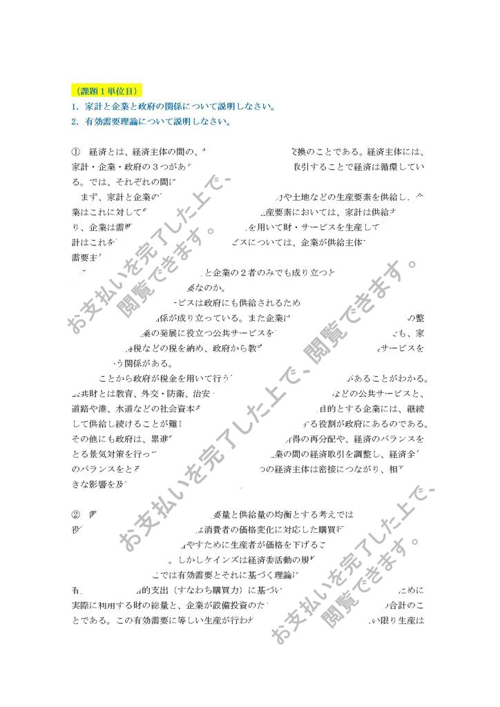また、本科目の科目終了試験の過去問と回答例も別データで販売しております。科目終了試験を受ける方、レポートに一工夫を加えたい方は参考にしていただければ幸いです。