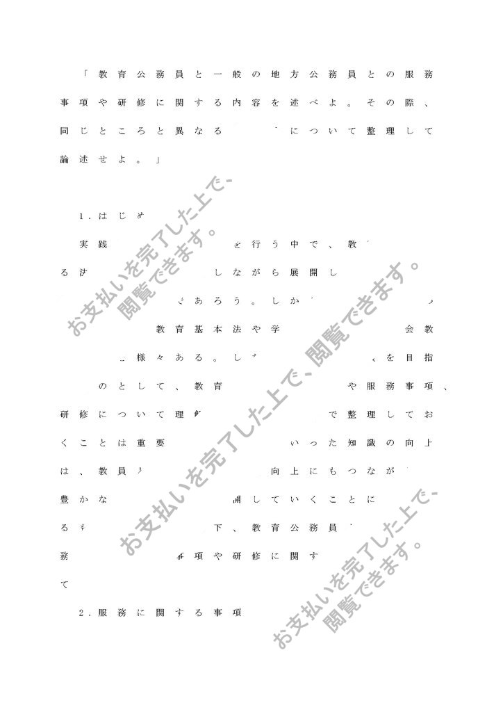 「教育公務員と一般の地方公務員との服務事項や研修に関する内容を述べよ。その際、同じところと異なるところについて整理して論述せよ。」