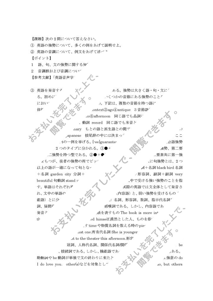 英語の音調について、例文をあげて述べよ。