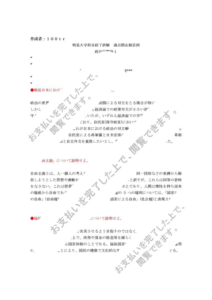 明星大学科目修了試験、政治学概論1の過去問とその解答例です。