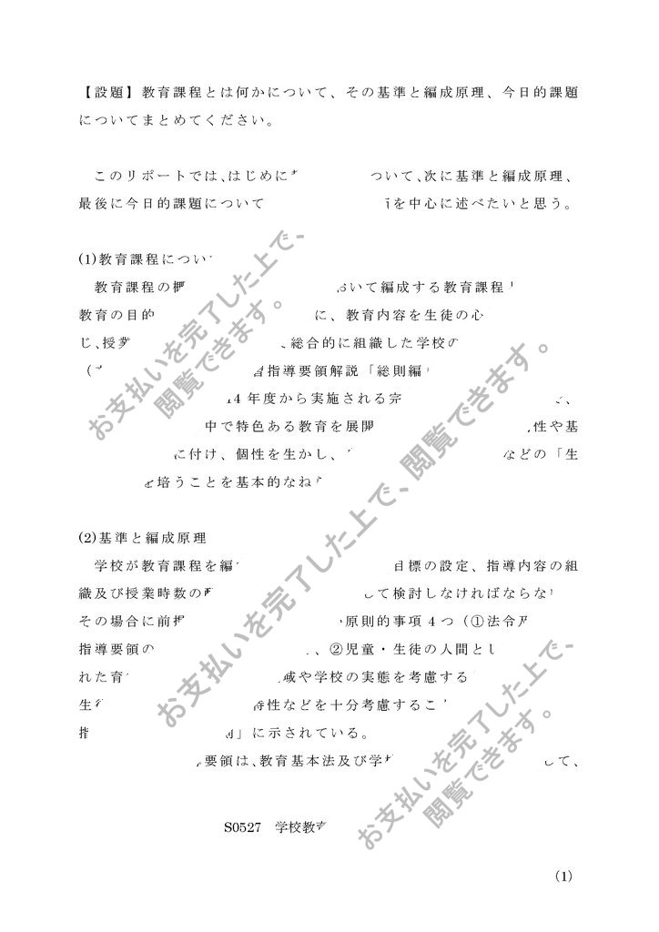 合格済みの学校教育課程論のレポートです。評価はAでした。