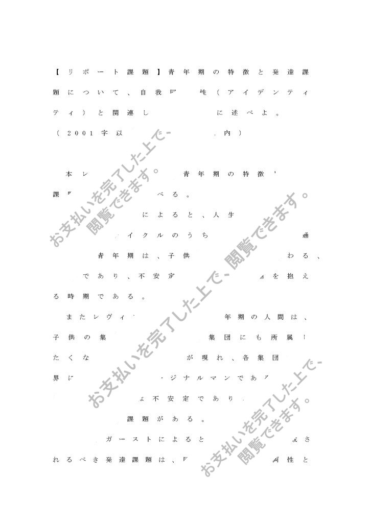 【リポート課題】青年期の特徴と発達課題について、自我同一性(アイデンティティ)と関連して具体的に述べよ。