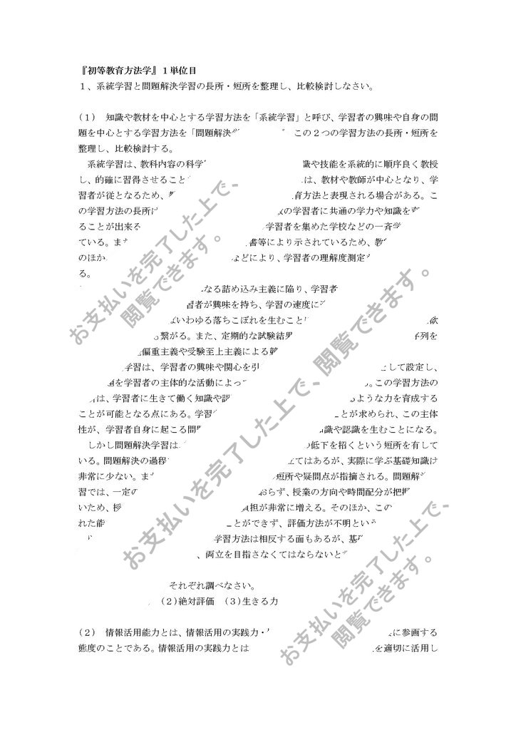 1、系統学習と問題解決学習の長所・短所を整理し、比較検討しなさい。