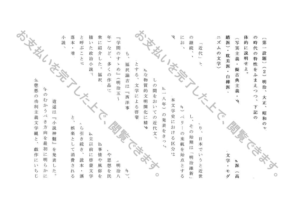 〔第一設題〕(2)明治、大正、昭和の文学の特質をそれぞれの時代の特性をふまえつつ、下記の各文学思潮を例にして具体的に説明せよ。