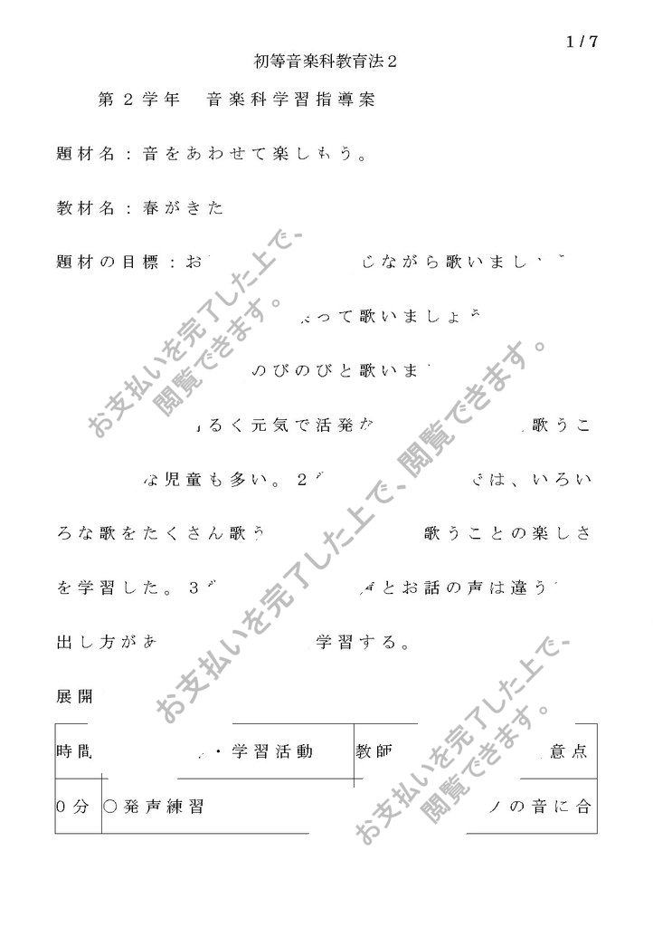 課題:2年生に『春がきた』を指導する場面を想像してください。歌の旋律はみんな既に知っているものとします。15分の枠でどのような指導をするか、具体的な言葉がけも入れて書いてください。ただし、お話はなるべく少なく、実際に声を出して歌う時間を多くとる指導にしてください。