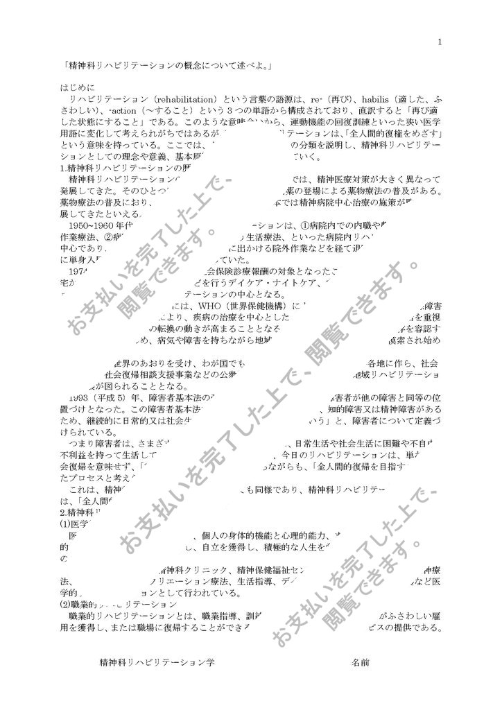 精神科リハビリテーション学 設題① 文字数3100字程度