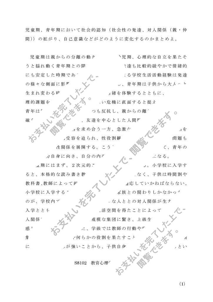 S8102 教育心理学1 A判定レポート
