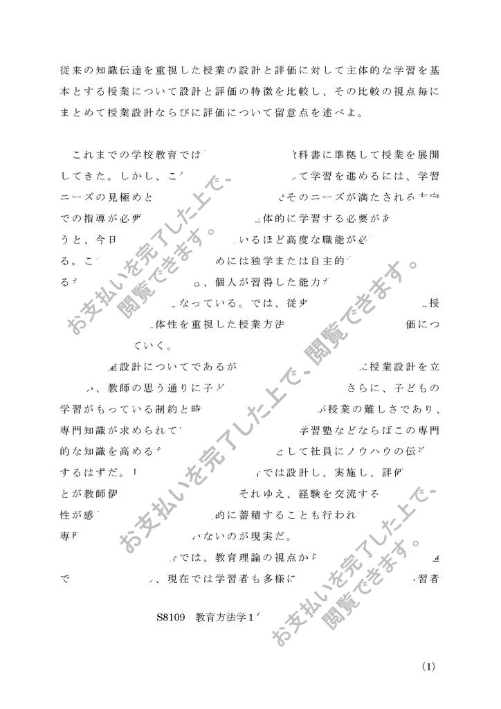 レポート設題:従来の知識伝達を重視した授業の設計と評価に対して主体的な学習を基本とする授業について設計と評価の特徴を比較し、その比較の視点毎にまとめて授業設計ならびに評価について留意点を述べよ。