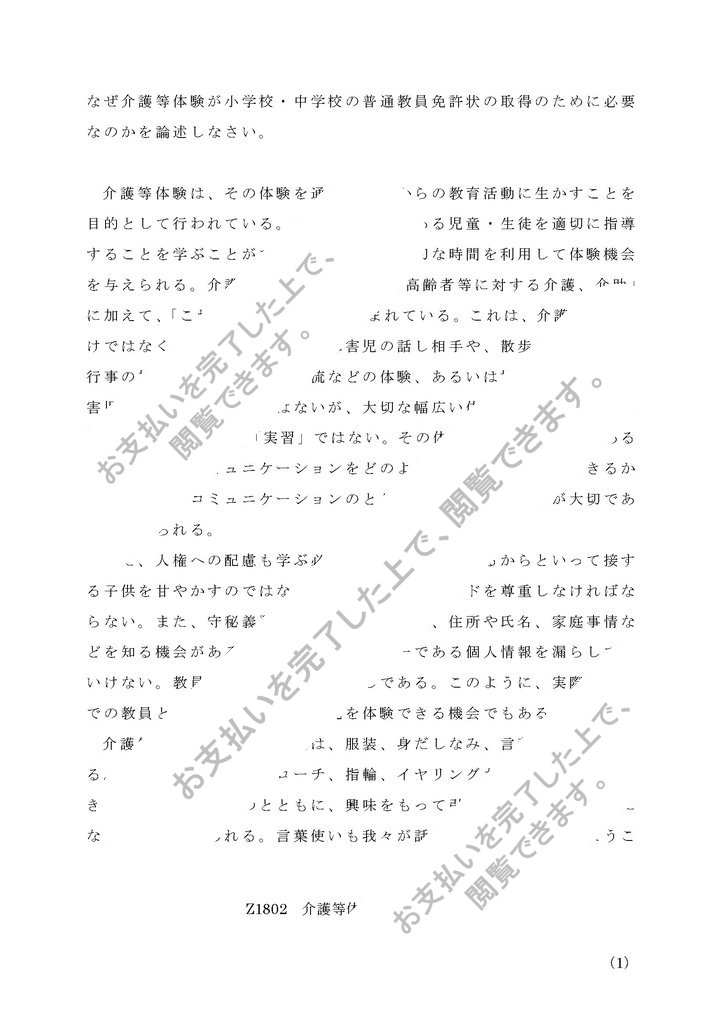 レポート設題:なぜ介護等体験が小学校・中学校の普通教員免許状の取得のために必要なのかを論述しなさい。