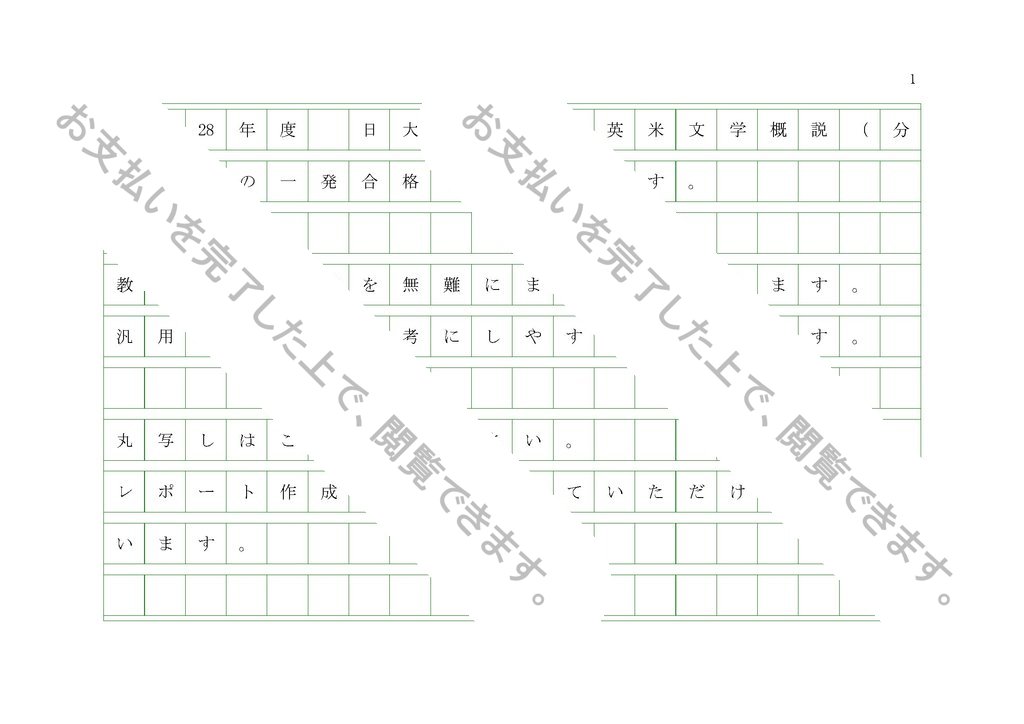 H27〜28年度 日大通信 「英米文学概説(分冊2)」の一発合格レポートです。