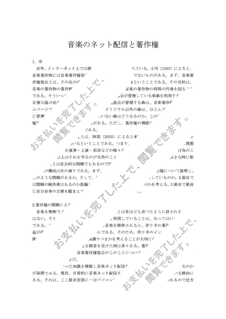 本稿の構成は次の通りである。まず、1節目に音楽ネット配信と著作権について説明し、どのような問題があるか。そして、どういった理由で著作権者を害しているのか。2節目では問題の解決策はあるのか指摘し、そのため具体的に何をするのかを考える。3節目で最後に自分自身の立場を踏まえてどうあるべきかを紹介していく。