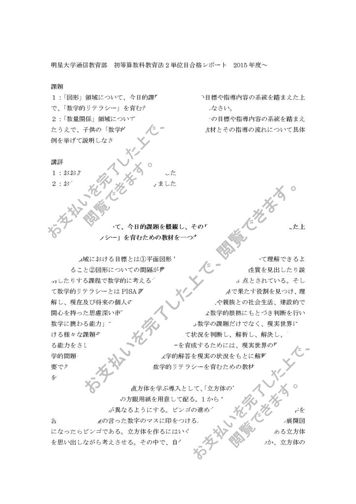 明星大学通信教育部 初等算数科教育法2単位目合格レポート 2015年度~