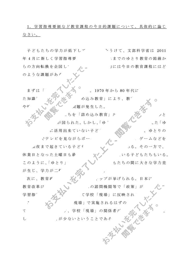 1.学習指導要領など教育課程の今日的課題について、具体的に論じなさい。