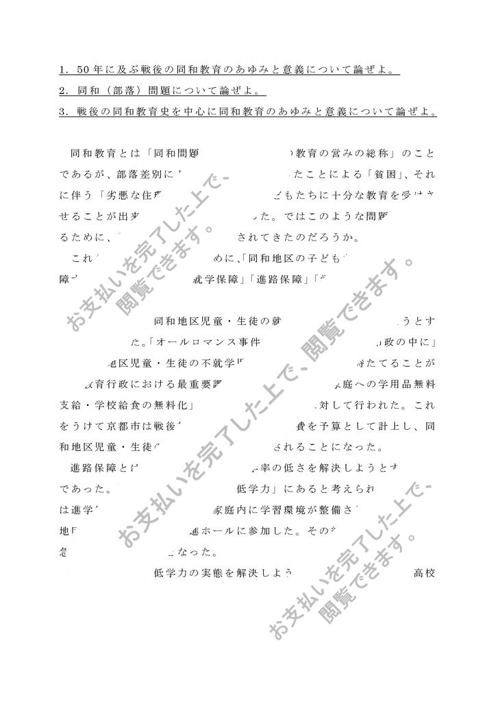 3.戦後の同和教育史を中心に同和教育のあゆみと意義について論ぜよ。