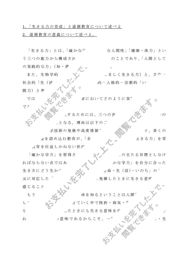 1.「生きる力の育成」と道徳教育について述べよ