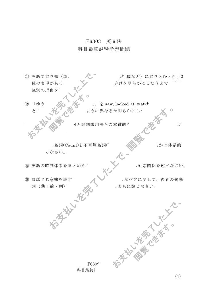 【佛教大学通信】P6303 英文法の科目最終試験対策6題セットとなります。