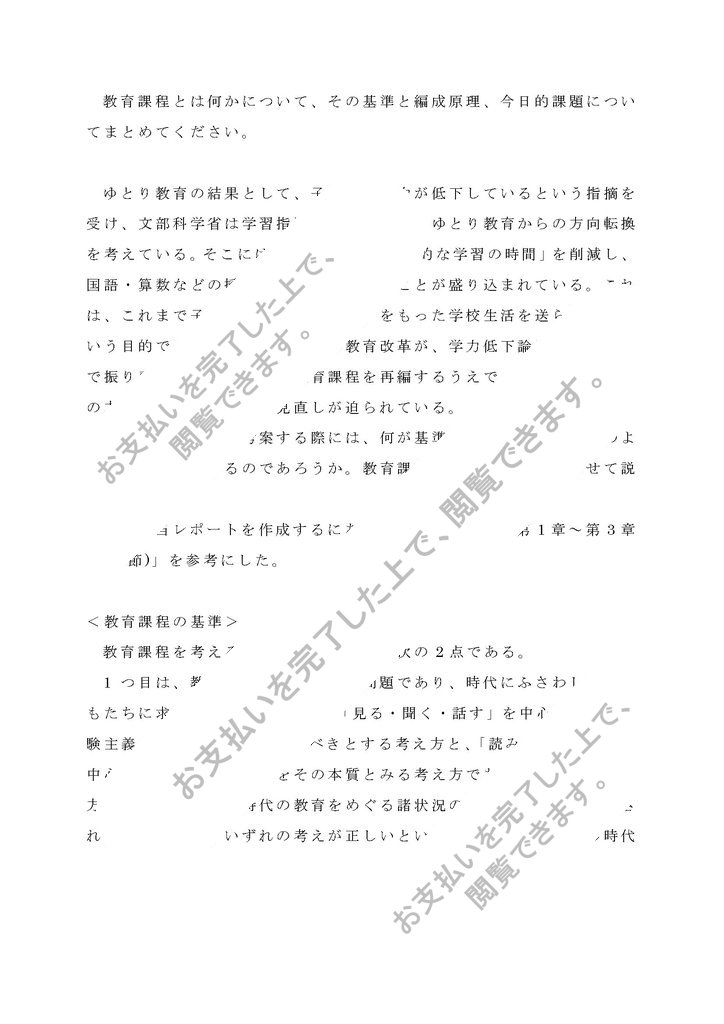 【設題】教育課程とは何かについて、その基準と編成原理、今日的課題についてまとめてください。