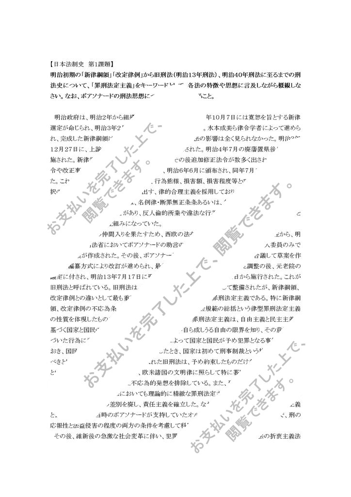 「明治初期から明治40年刑法までの刑法史について罪刑法定主義をキーワードにして論ぜよ」2000字です。