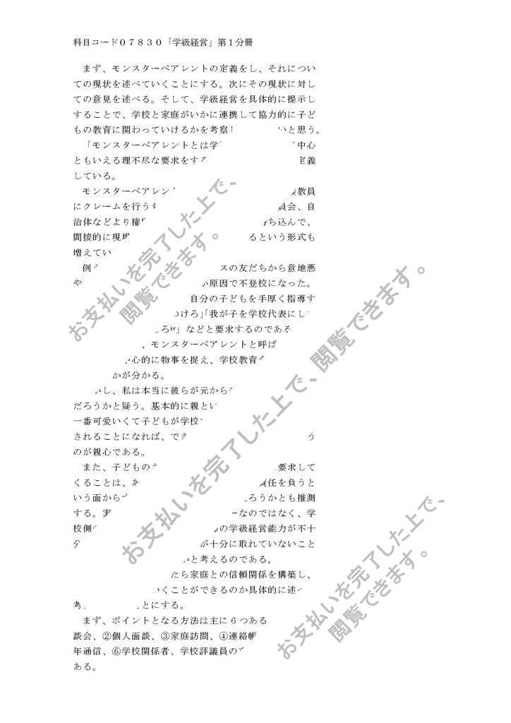 科目コード07830「学級経営」第1分冊