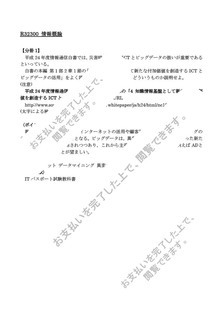 「R32300 情報概論 分冊1」および「R32300 情報概論 分冊2」の合格レポートのセットです。