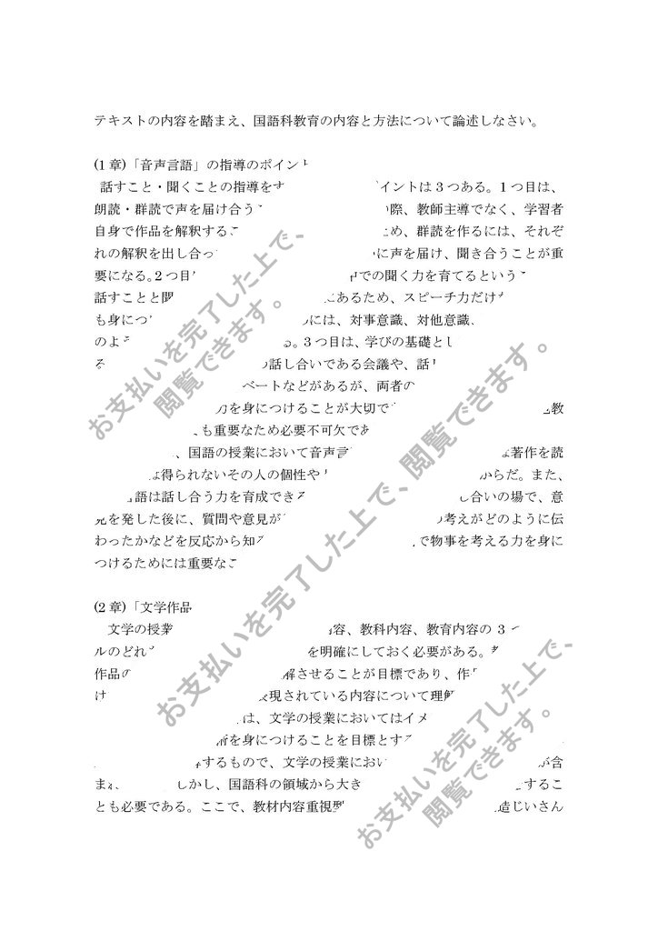 テキストの内容を踏まえ、国語科教育の内容と方法について論述しなさい。