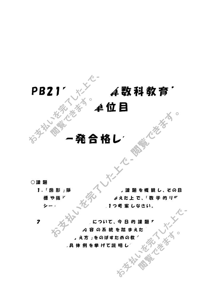 1.「図形」領域について、今日的課題を概観し、その目標や指導内容の系統を踏まえた上で、「数学的リテラシー」を育むための教材を1つ考案しなさい。