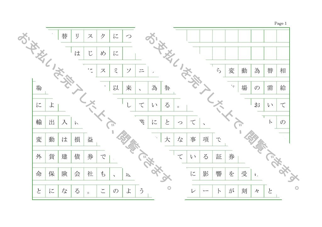 19 73年にスミソニアン体制から変動為替相場へ移行して以来、為替レートは市場の需給により日々変化している。ビジネスにおいて輸出入に関わる企業にとって、為替レートの変動は損益に関わる重大な事項である。また外貨建債券で運用を行っている証券会社や生命保険会社も、運用利回りに影響を受けることになる。このように為替レートが刻々と変動する状況において、そのリスクをどのように考えるべきなのか、どのように向き合って期待収益への影響を抑えて行けば良いのかが重要になる。