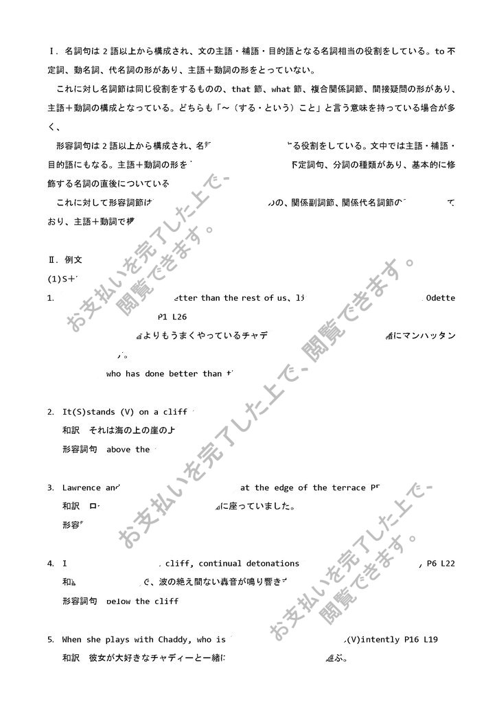 Ⅰ.名詞句は2語以上から構成され、文の主語・補語・目的語となる名詞相当の役割をしている。to不定詞、動名詞、代名詞の形があり、主語+動詞の形をとっていない。