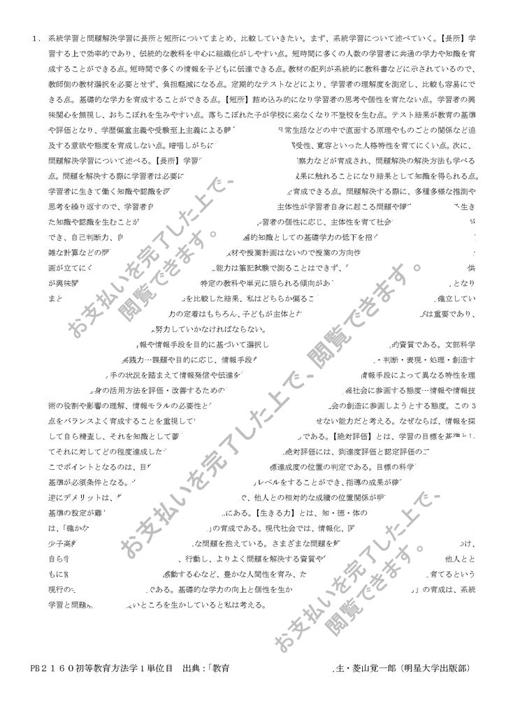 1.系統学習と問題解決学習の長所・短所を整理し、比較検討しなさい。