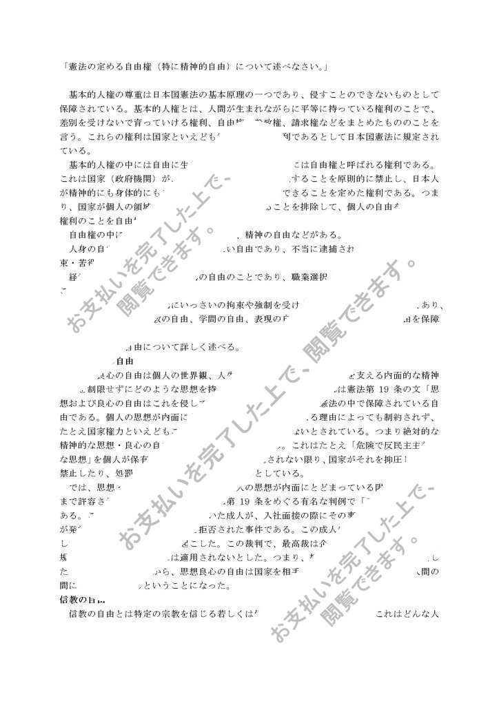 「憲法の定める自由権(特に精神的自由)について述べなさい。」