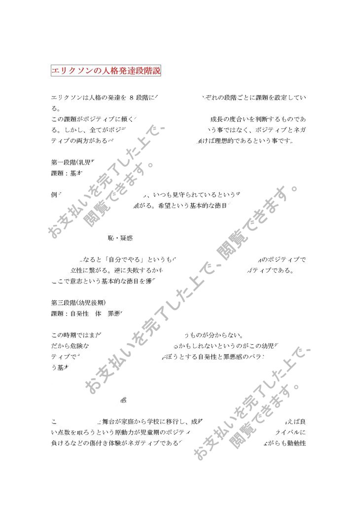 エリクソンは人格の発達を8段階に分けている。それぞれの段階ごとに課題を設定している。