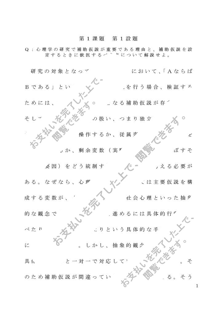 聖徳大学 心理学研究法課題1 評価はAでした。講評は「補助仮説を立てるとき、何に留意するのかよくまとめられています」とありました。