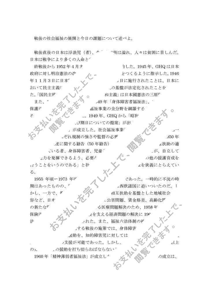 戦後の社会福祉の展開と今日の課題について述べよ。
