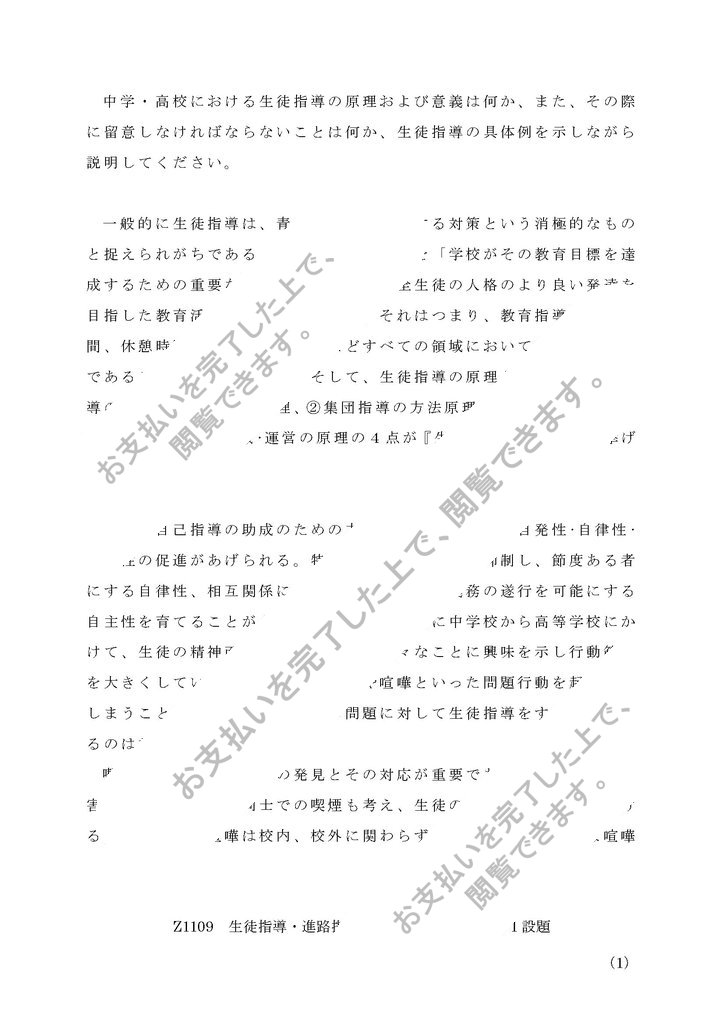 まず①自己指導の助成のための方法原理においては、自発性•自律性•自主性の促進があげられる。特に、衝動的な行動を抑制し、節度ある者にする自律性、相互関係における権利の主張と義務の遂行を可能にする自主性を育てることが必要とされている。特に中学校から高等学校にかけて、生徒の精神面は大きく発達し、様々なことに興味を示し行動範囲...