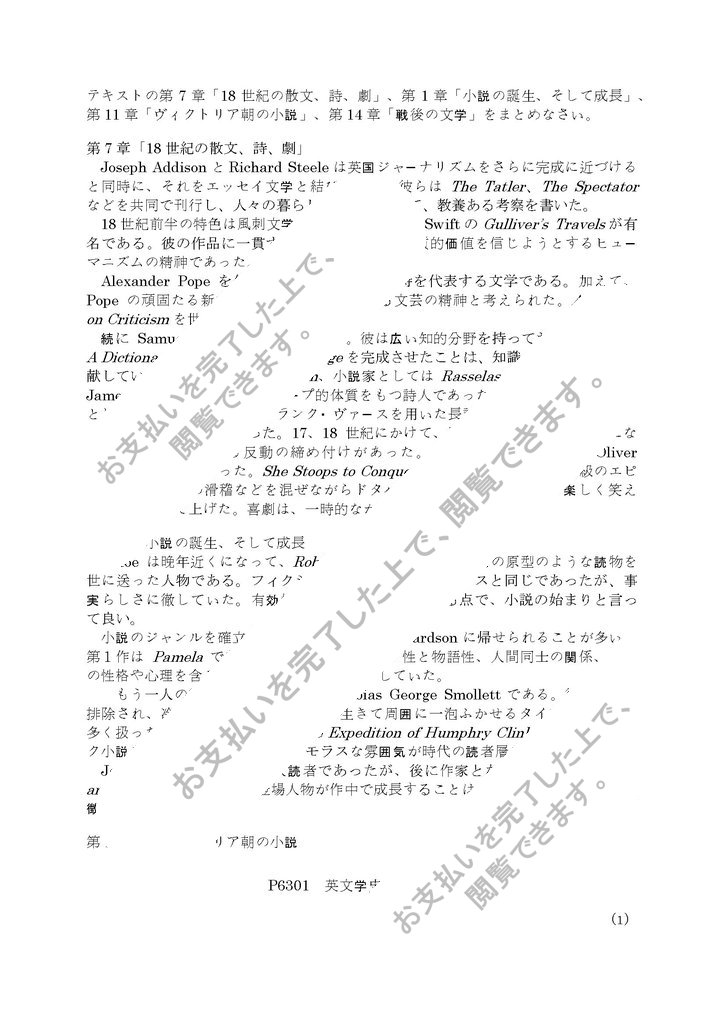 テキストの第7章「18世紀の散文、詩、劇」、第1章「小説の誕生、そして成長」、第11章「ヴィクトリア朝の小説」、第14章「戦後の文学」をまとめなさい。