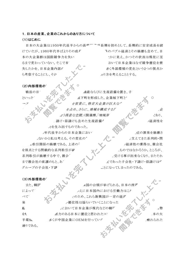 日本の大企業は1950年代後半からの高度経済成長期を初めとして、長期的に安定成長を続けていたが、1980年代半ばよりその成長は鈍化した。以降のバブル経済とその崩壊も含めて、日本の大企業群は国際競争力を失い、かつての繁栄を失ったかに見え、かつその状況は現在に至るまで変わっていない。そこで本項では、1980年代後半において日本企業はなぜ競争優位を喪失したかを、日本企業内部の変化、そして日本企業を取り巻く外部環境の変化という2つの視点から考察することにし、それを踏まえて今後の日本企業のあり方を考えることとする。